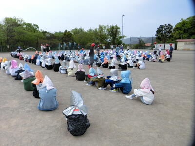 4月14日(金)には、避難訓練を行いました。今回は、火災を想定した訓練でした。火災発生の放送が入ってから、どの学年も「おはしも」を徹底し、素早く安全に運動場へ避難することができました。日頃から「自分の命は自分で守る」という意識をもって生活していることが分かりました。その後は、クラスごと、訓練の振り返りを行いました。