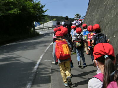 交通ルールを守って歩いたり、友達と誘い合いながら仲良く遊んだり、地域の方々に元気よくあいさつしたりと、八幡野小学校のよさが輝いた遠足となりました。