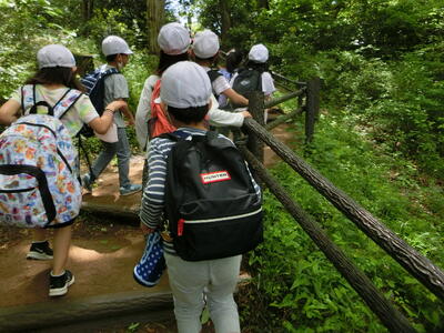 自然いっぱいの丸山公園では、植物を観察したり、生き物を探したりと普段の学校生活では味わうことのできない自然の素晴らしさを肌で感じていました。