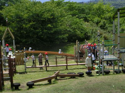 4月28日(金)、2・3年生合同で春の遠足へ行きました。場所は小室山です。伊豆高原駅から川奈駅まで電車に乗って移動し、小室山では歩きました。天気もよく、素晴らしい景色の中、とても気持ちよく遊ぶことができました。たくさん歩き、たくさん遊びましたが、暑さや疲れに負けず、最後まで元気に過ごすことができました。