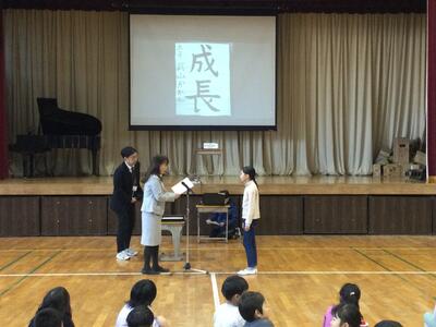 12月20日(金)には、2学期の終業式を行いました。一年間の中でもっとも長い学期でしたが、思い返すと、どの学年も自分達の持ち味を発揮しながら様々なことに挑戦し大きく成長することができたと思います。校長の話では、各学年を漢字一文字で表しながら、それぞれの学年のよさや強みについて話しました。また、終業式後には表彰集会を行い、夏休みや学校の取り組みで賞を受けた子どもを全校の前で表彰しました。