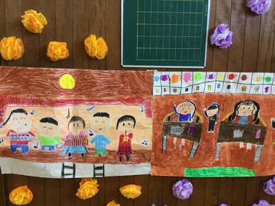 1月8日(水)には、4年生の書き初めを行いました。「晴れた空」という文字を書きました。自分の字と向き合いながら、「今年の目標は・・・にしよう。」「今年は・・・な1年になるといいな。」など、思いや願いを込め、真剣に書き上げていました。