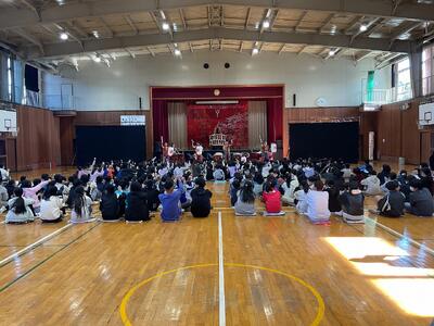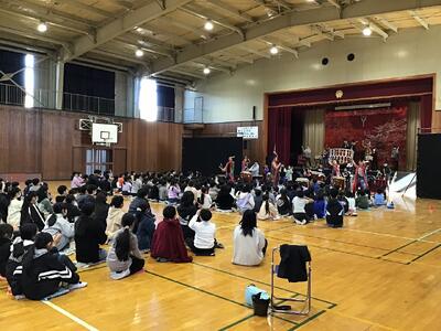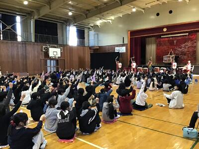 12月5日に「世界を旅する和太鼓集団『倭』」の皆様をお招きし、心に響く迫力ある演奏を披露していただきました。力強い太鼓の響きが体育館いっぱいに広がり、子どもたちは音の波に包まれながら、目を輝かせて聴き入っていました。ひと打ちごとに伝わる息の合ったリズムや、演奏者の皆さまの真剣な姿勢に、児童からは「体の中まで響いた」「自分も叩いてみたくなった」という声がたくさん上がりました。