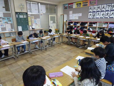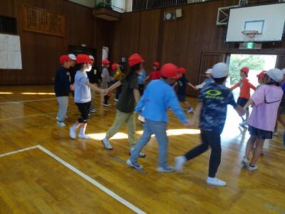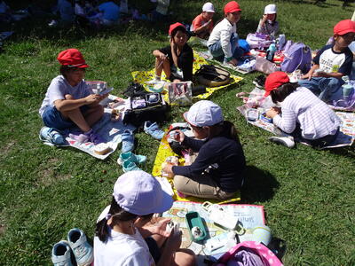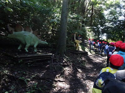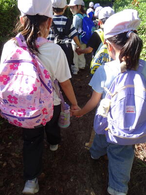 道中は1年生がはぐれないようにと、2年生が手をつないで一緒に歩き、きれいに2列で移動する姿が見られました。学年団での行動や遊びを通して、1・2年生の絆がまた一つ深まった気がします。