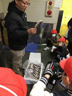 見学の中で、火災現場での放水の様子や魚をさばいて開きにする工程など、実際の仕事を間近で見させていただきました。経験のしたことがないことを『見て』『聞いて』、素晴らしい学びになったと思います。子供達の表情も興味津々という様子で、前のめりなって学ぶ姿が見られ、体験的な学習はやはり大切だなと改めて教えてもらいました。